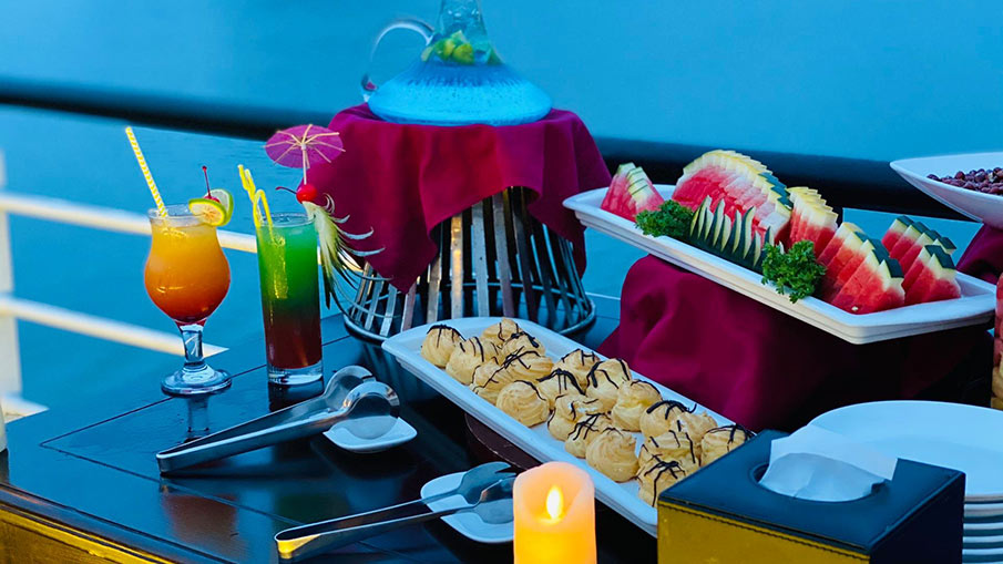 12h00 Guests enjoy a high-class buffet lunch with famous fresh seafood dishes of Quang Ninh as well as traditional Vietnamese dishes.