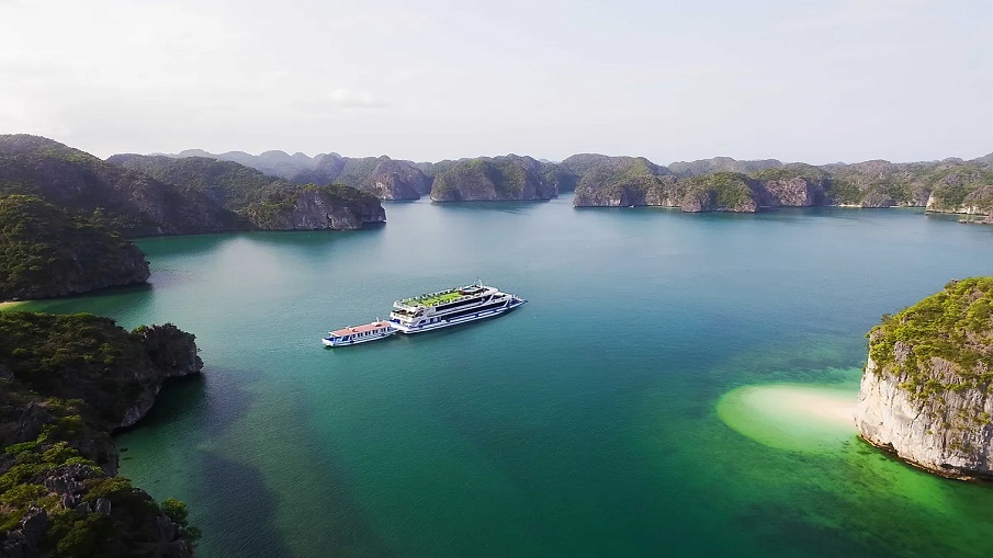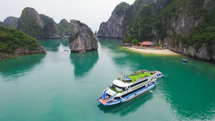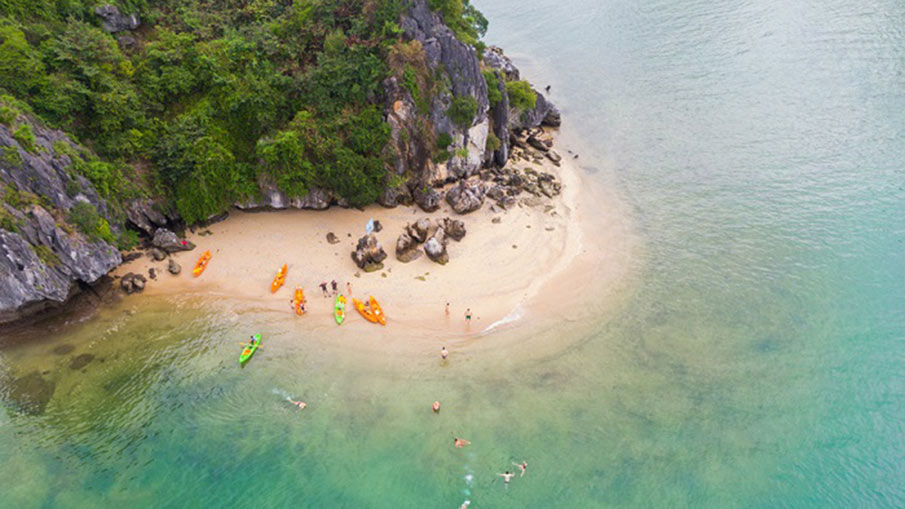14h00 In the area of Hang Luon, visitors can kayak / canoe or stay at the boat (guests who do not use this service can stay on board to use the Jacuzzi on board). After experiencing caves, kayaking, you go to the beach in Titov area to swim with beautiful white sand.